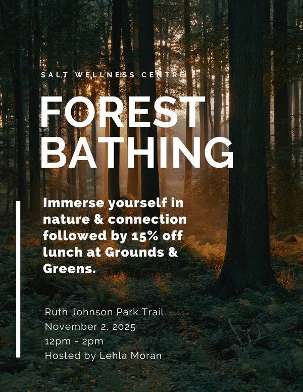 Come join Lehla Moran for a mindful walk in the forest and learn how slowing down and connecting with nature can have a profoundly positive impact on your mental and emotional state. If weather holds